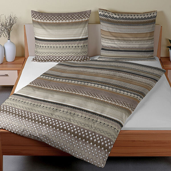Ein Mustermix im Streifendessin. So bringt das Dessin „Alfredo“ aus dem Hause CASATEX eine elegante Atmosphäre in ihr Schlafzimmer. Dank der natürlichen Stoffqualität laden die Bezüge zum Anschmiegen und Einkuscheln ein. Praktisch sind die in Kissen- und Bettbezug eingenähten Reißverschlüsse, mit denen das frische Beziehen zum Kinderspiel wird. Die Bezüge sind maschinenwaschbar und können bedenkenlos in den Trockner gegeben werden. Die perfekte Wahl für erholsame Nächte.