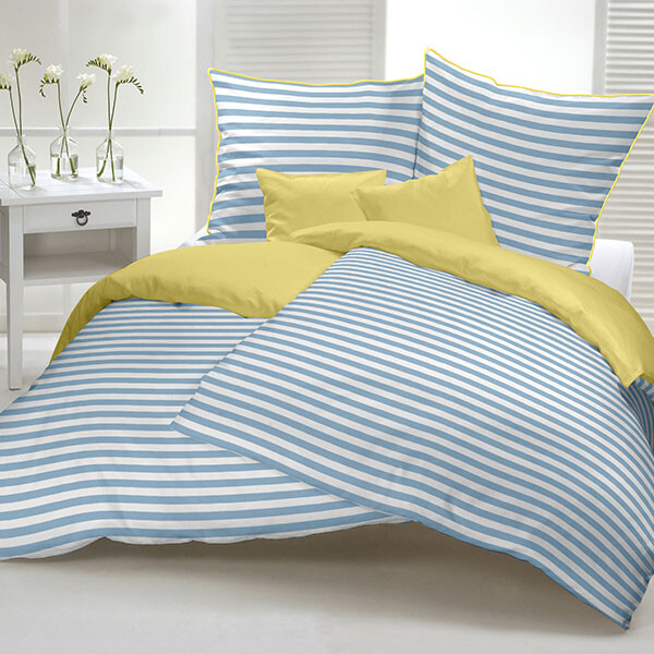 Bringen sie mit der gestreiften Wendebettwäsche „Capri“ aus dem Hause Casatex Abwechslung in ihr Schlafzimmer. Diese Bettwäsche überzeugt mit ihrer klassisch, modernen Streifenoptik. Ein attraktiver Blickfang ist der gelbe Zierrand (Paspel), der passend zu den Farben abgestimmt ist. Mit dieser Bettwäsche erstrahlt Ihr Schlafzimmer in einem schlichten aber modernen, klassischen Glanz. Die hochwertige Satin Qualität verspricht angenehme und erholsame Träume. Die Bettwäsche ist maschinenwaschbar und kann bedenkenlos in den Trockner gegeben werden. Verdeckte Reißverschlüsse an Kissen -und Bettbezug machen das Beziehen zum Kinderspiel. Die perfekte Wahl für erholsame Nächte.