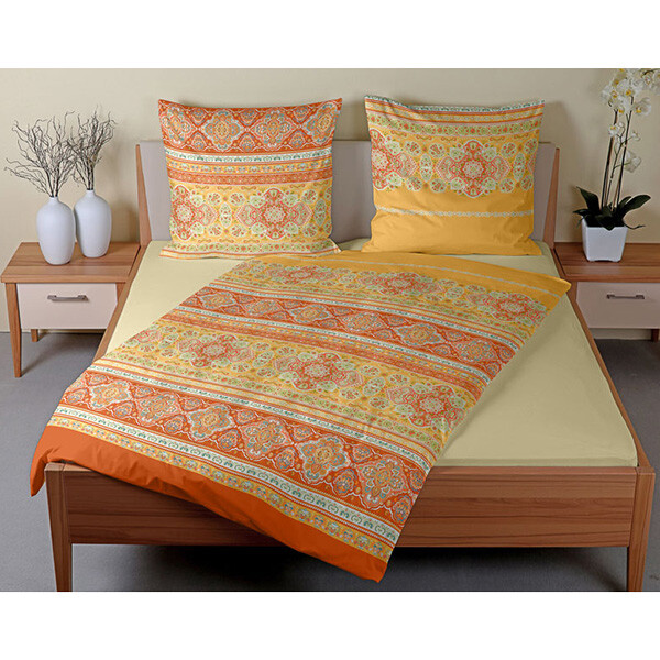 Lass dich von der trendigen Bettwäsche „Majella“ aus dem Hause CASATEX ins Land der Träume entführen. Die frischen, ausdrucksvollen Farben der wunderschönen Ornamentikbettwäsche zaubern ein neues Ambiente in dein Schlafzimmer. So holen sie sich den romantischen Luxus in ihren Schlafbereich. Dank der natürlichen Stoffqualität laden die Bezüge zum Anschmiegen und Einkuscheln ein. Praktisch sind die in Kissen- und Bettbezug eingenähten Reißverschlüsse, mit denen das frische Beziehen zum Kinderspiel wird. Die Bezüge sind maschinenwaschbar und können bedenkenlos in den Trockner gegeben werden. Für erholsame Nächte eine ideale Wahl.