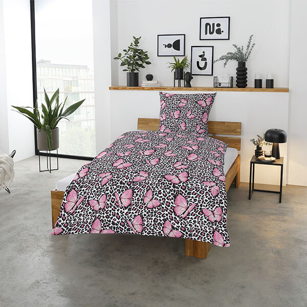 Animal Prints!! Das Trendthema!! Bei der Bettwäsche „Menga“ aus dem Hause CASATEX wird dieser Trend mit fröhlich wirkenden Schmetterlingen kombiniert. Die kräftigen Farben der Schmetterlinge bringen eine gewisse Leichtigkeit in den schwarz-weißen Hintergrund. So holen sie sich ganz neue Akzente in ihren Schlafbereich. Dank der natürlichen Stoffqualität laden die Bezüge zum Anschmiegen und Einkuscheln ein. Praktisch sind die in Kissen- und Bettbezug eingenähten Reißverschlüsse, mit denen das frische Beziehen zum Kinderspiel wird. Die Bezüge sind maschinenwaschbar und können bedenkenlos in den Trockner gegeben werden. Die perfekte Wahl für erholsame Nächte!