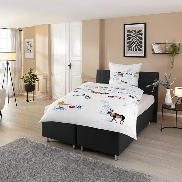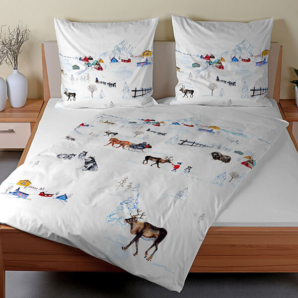 Tauche dein Schlafzimmer in die zauberhafte Welt des skandinavischen Winters mit der einzigartigen Bettwäsche „Scanda“ aus dem Hause CASATEX im skandinavischen Stil. Die winterliche Landschaft, geprägt von bunten skandinavischen Häusern, einer gemütlichen Kutschfahrt und majestätischen Rentieren, entführt dich in eine Welt voller Stille und Ruhe. Hergestellt aus hochwertiger Baumwolle sorgt unsere Satin – Bettwäsche für ultimativen Komfort und ein angenehmes Schlafgefühl. Praktisch sind die in Kissen- und Bettbezug eingenähten Reißverschlüsse, mit denen das frische Beziehen zum Kinderspiel wird. Die Bezüge sind maschinenwaschbar und können bedenkenlos in den Trockner gegeben werden. Für erholsame Nächte eine ideale Wahl.