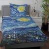 Die „Sternennacht“ zählt neben den Sonnenblumen zu den bekanntesten Werken von Vincent van Gogh. Ein prächtiger Nachthimmel in dominierendem Blau mit gelb strahlendem Mond und leuchtenden Sternen lädt zum Träumen ein. GOEBEL hat ein Design eines des genialsten Künstlers seiner Zeit auf dieser wundervollen Bettwäsche umgesetzt. Die Satin Bettwäsche aus 100% Baumwolle ist besonders pflegeleicht und hautfreundlich. Praktisch sind die in Kissen- und Bettbezug eingenähten Reißverschlüsse, mit denen das frische Beziehen zum Kinderspiel wird. Die Bezüge sind maschinenwaschbar und können bedenkenlos in den Trockner gegeben werden. Die perfekte Wahl für erholsame Nächte!